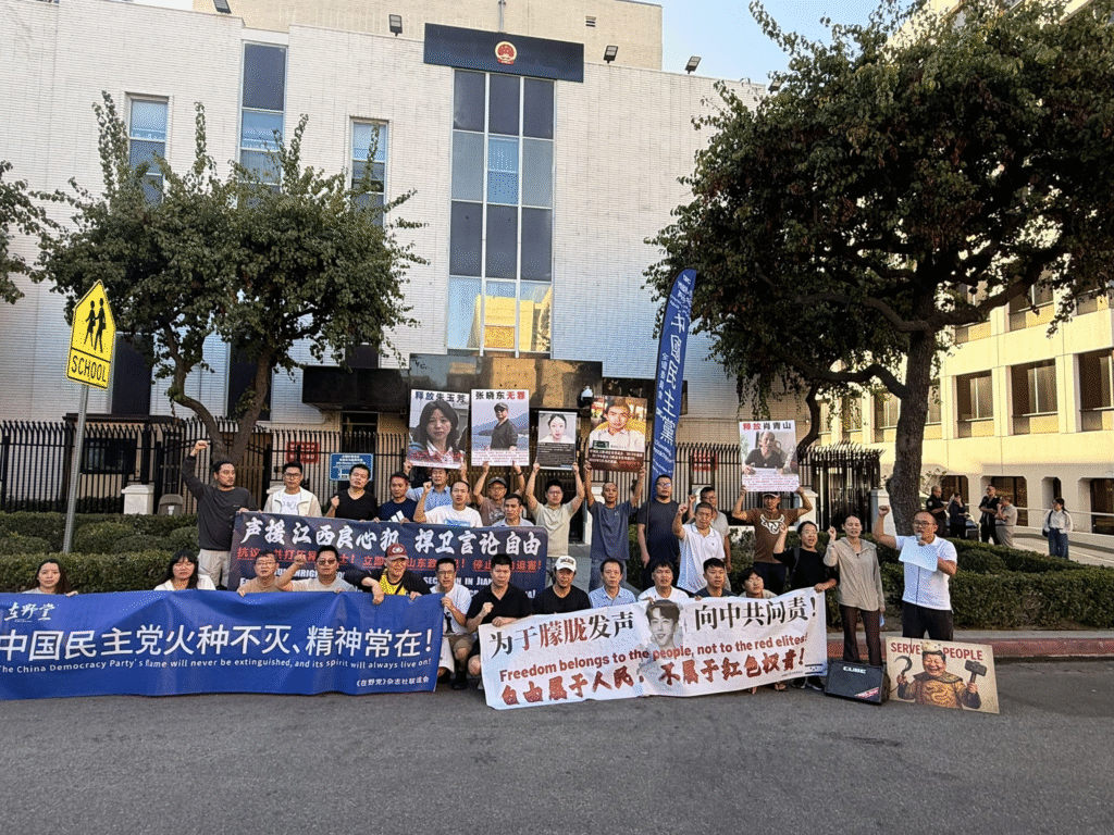 2025年10月4日下午4点,中国民主党在洛杉矶中国领事馆前举行第758届茉莉花行动。本次活动的主题是“为江西民主人士发声”。