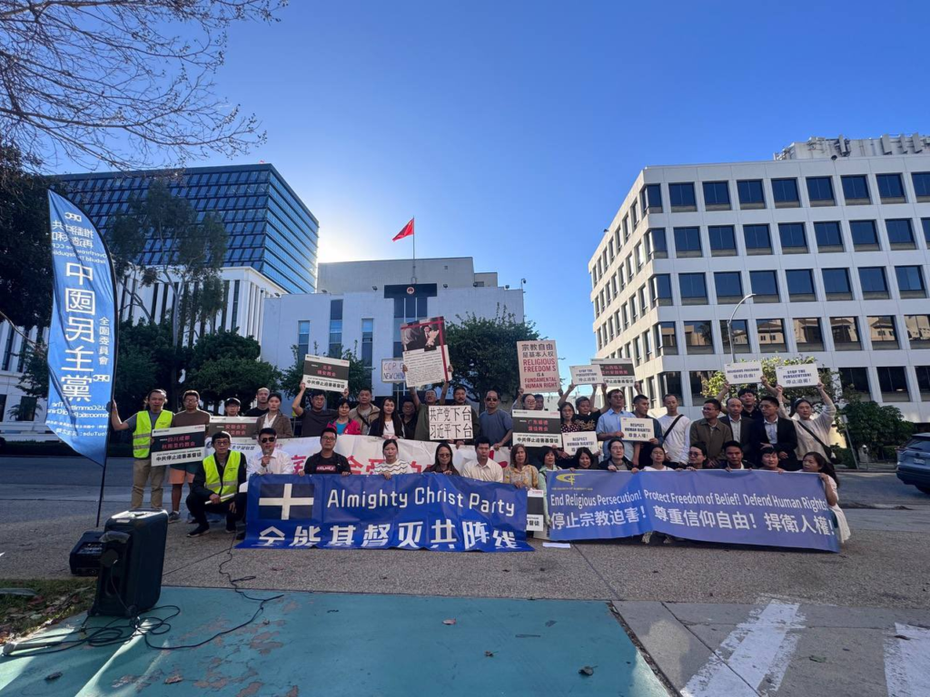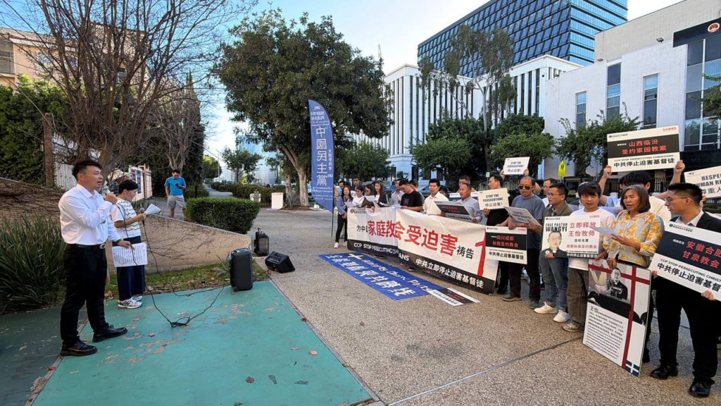2026年3月7日下午3:00,中国民主党在洛杉矶中国领事馆前举行第780次茉莉花行动,本次活动主题为“声援中国受迫害家庭教会/牧者”。