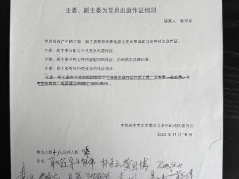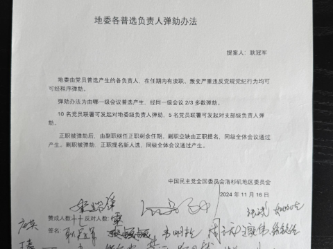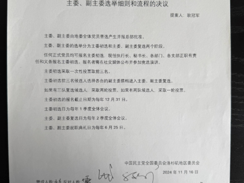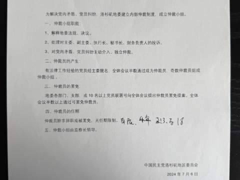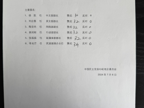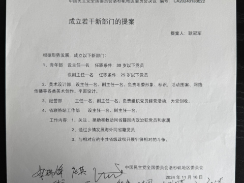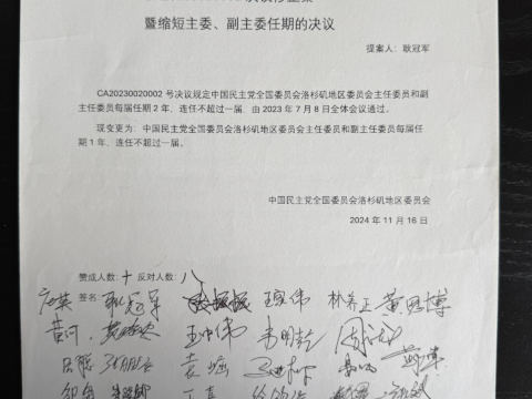 中国民主党洛杉矶地区委员会决议 编号: CA20240090013