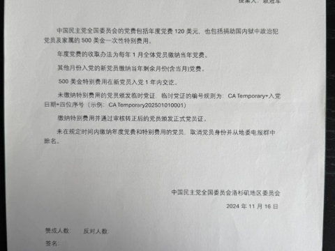 中国民主党洛杉矶地区委员会决议 编号: CA20250100033