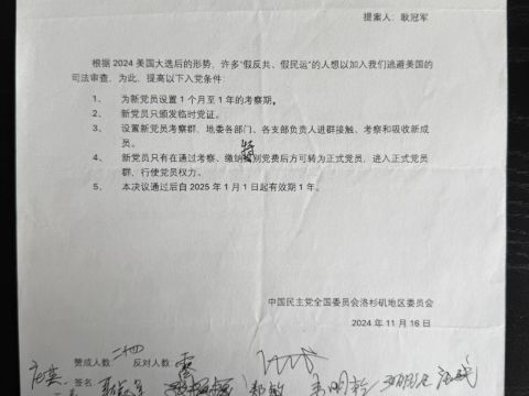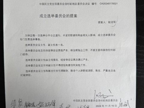中国民主党全国委员会洛杉矶地区委员会决议 编号: CA20240120016