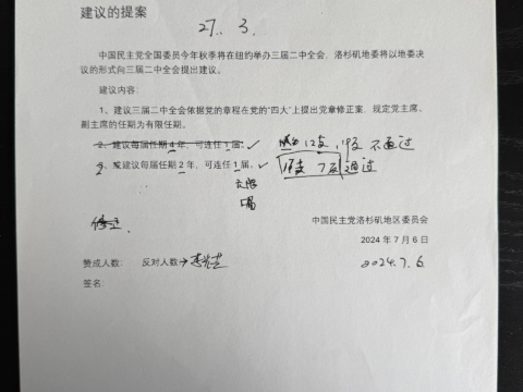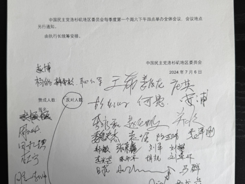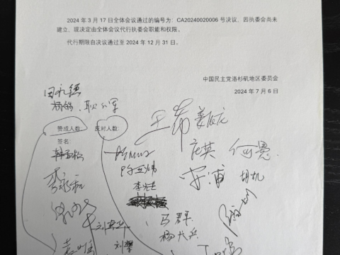 中国民主党洛杉矶地区委员会决议 编号: CA20240080012
